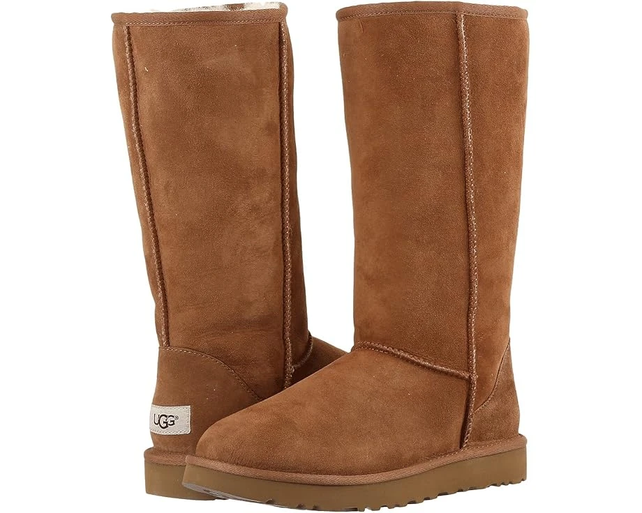The Classic Tall II runs large and is available in whole sizes. Please order one size down from your normal size. If a half size, please order only 1/2 size down.SKU: #8727081Please be advised, boots are not made for snow and ice or heavy walking.The always on-trend UGGยฎ Classic Tall II pull-on boot is crafted form 17mm twinface sheepskin upper and is now water-resistant and stain-resistant.Plush sheepskin lining and footbed keep feet feeling breathable and dry.New Treadlite by UGGโข outsole provides increased traction, durability, cushioning and flexibility. Please Note: Slight dye transfer may occur with darker colored sheepskin during first few wears.Real sheep fur or lamb has been artificially dyed and treated.