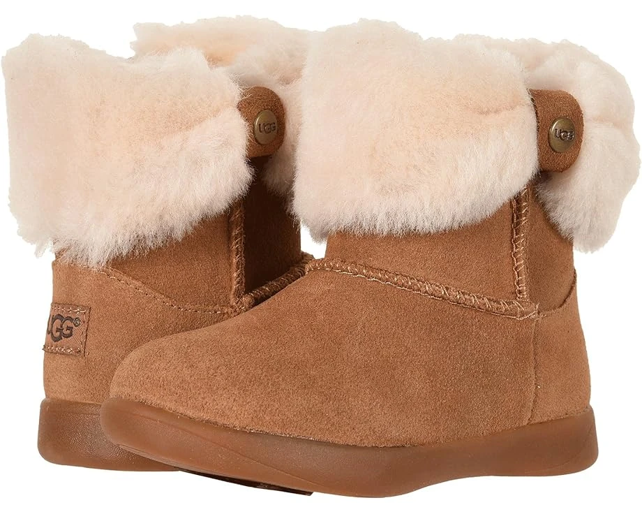 Crafted from supple suede and showcasing a luxe shearling collar, these round-toe UGGยฎ Kids Ramona ankle boots will keep her toes nice and toasty this season.SKU: #9077172Please be advised, boots are not made for snow and ice or heavy walking.Fuss-free medial zipper closure and snap-tab side detail.Textile lining. Flexible rubber outsole delivers long-lasting durability on a variety of surfaces.Imported.Real sheep fur or lamb has been artificially dyed and treated. Fur origin: Australia, European Union or United States. Product measurements were taken using size 7 Toddler, width M. Please note that measurements may vary by size.Measurements: