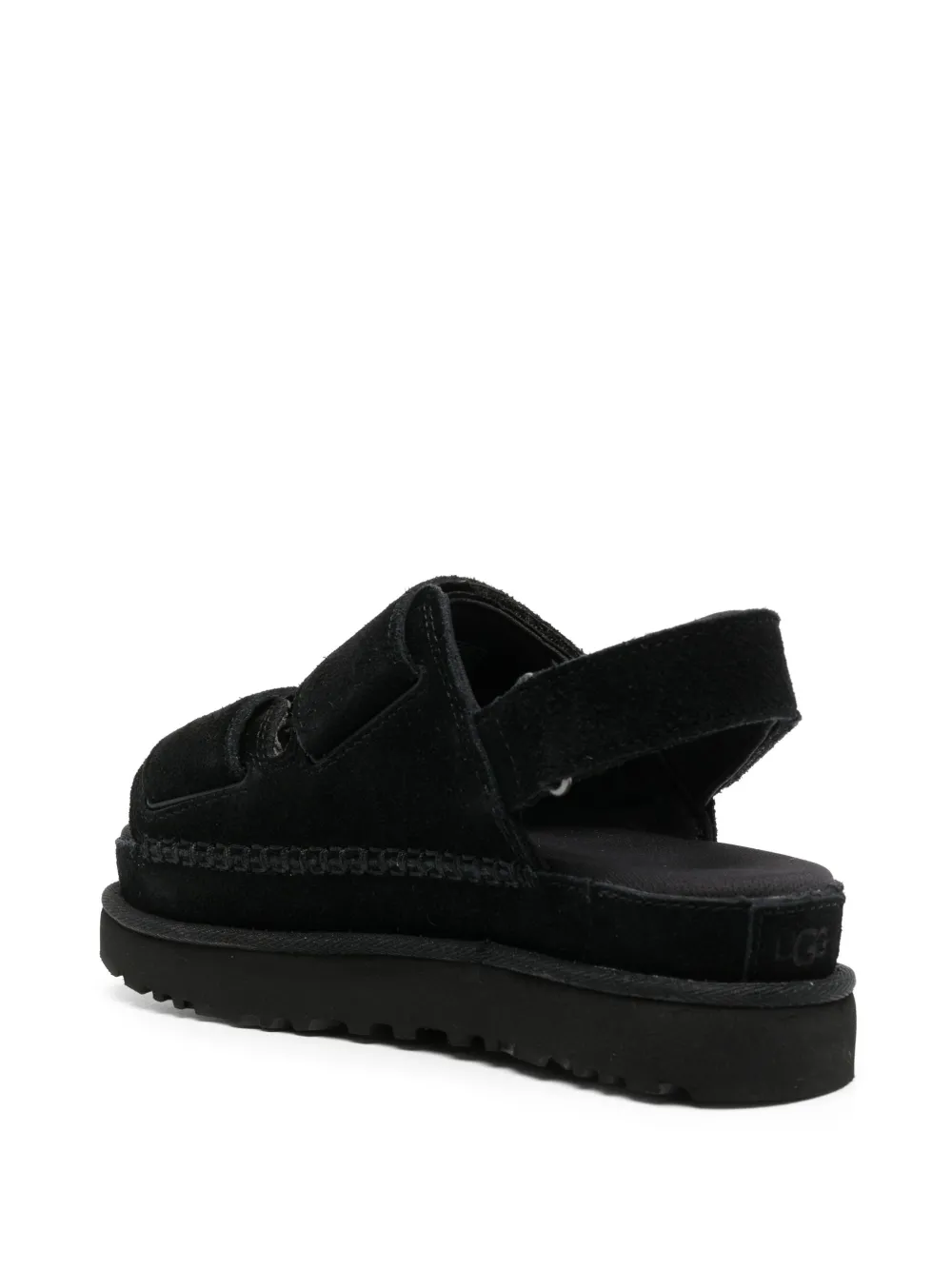 Style and practicality meet halfway in these Goldenstar sandals, designed by UGG. The slingback silhouette is crafted from jet-black suede and finished with touch strap fastening at the ankle for a casual look.